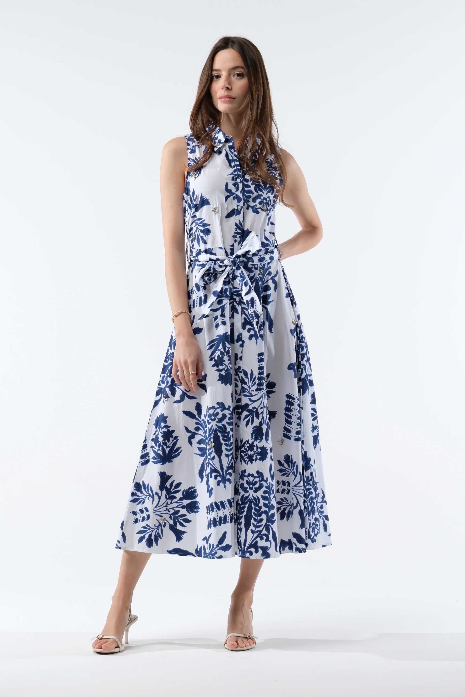 Robe chemise brodée de bijoux
